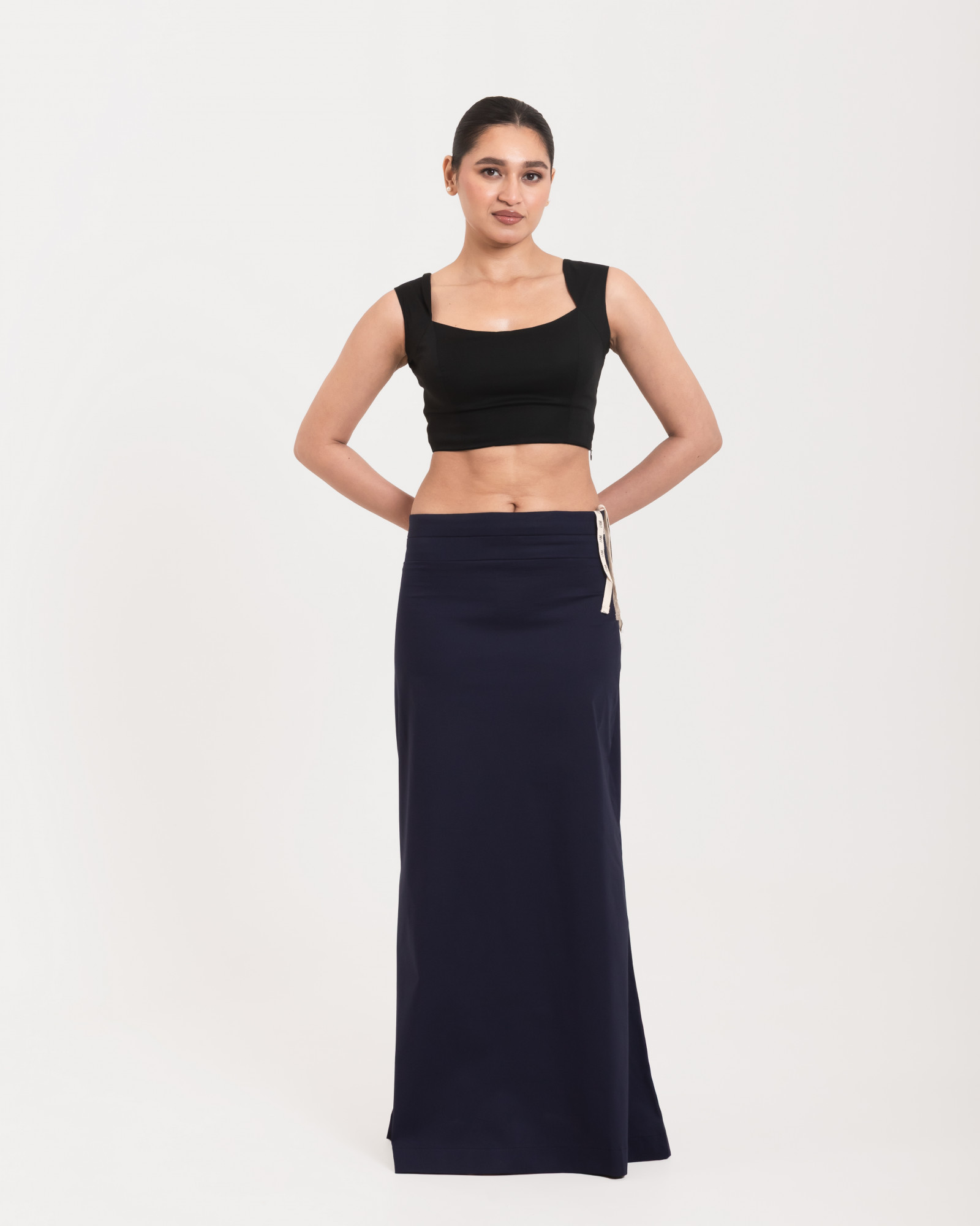• Premium Cotton and Lycra woven together for an airy, breathable and lightweight fit that does not bulk or cling onto the body. • Double elasticised waistband can be used to shorten or extend the length. Woven drawstring avoids spillage and prevents bruising or rashes. • From Banarasi Silks to organza, georgette, chiffon and cotton sarees, D'Coat Simple Extender works with all. • 100% Azo free fabric used ensuring skin friendliness and sweat absorption.
